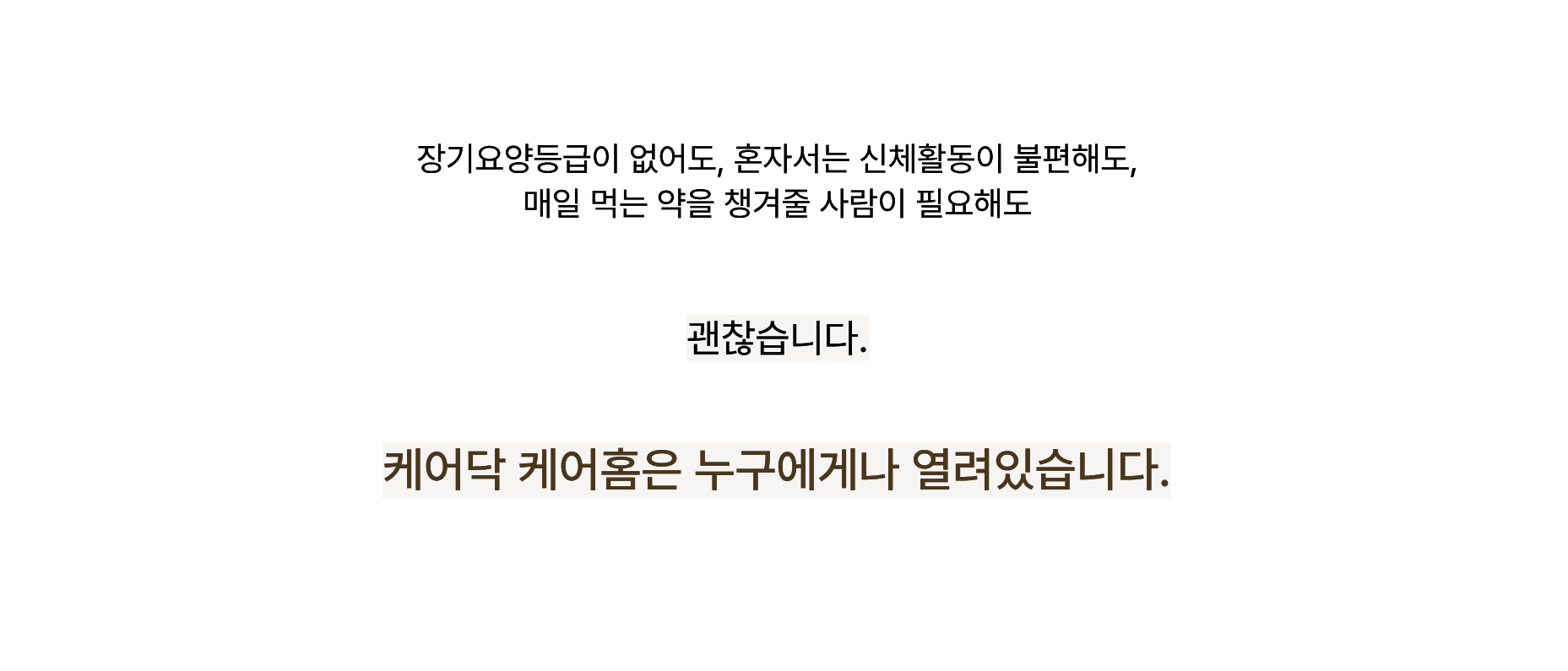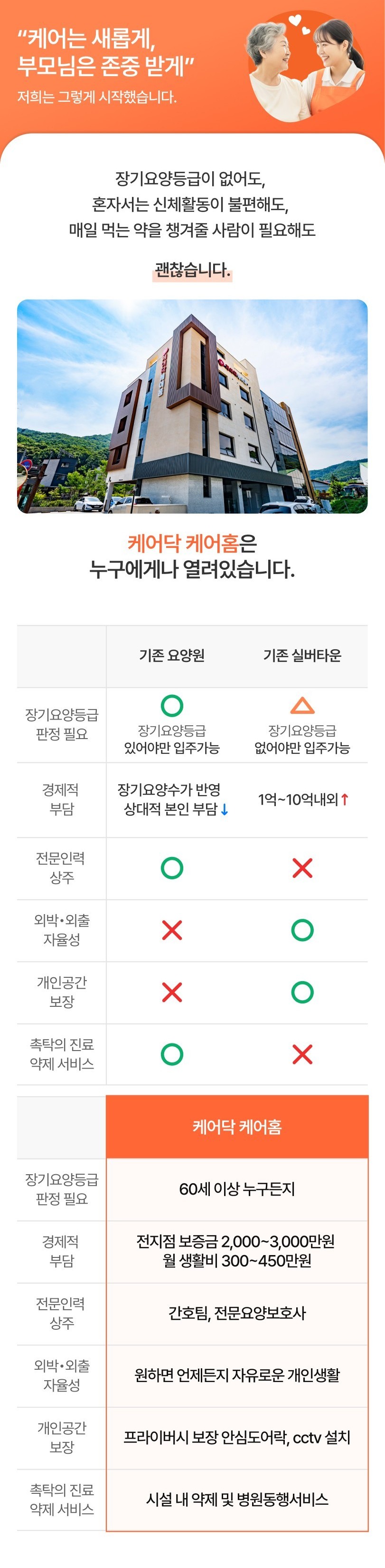 "요양원, 양로원의 양갈래길 중간에 계신 저희 어머니 같은 분들을 완벽하게 소화해낼 수 있는 곳입니다."